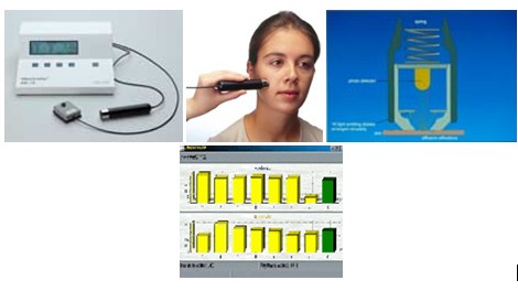 测试原理:基于光谱吸收的原理(RGB),通过测定特定波长的光照在人体皮肤上后的反射量来确定皮肤中黑色素的含量。仪器探头的发射器发出波长分别为568nm、660nm、和880nm三种波长的光照射在皮肤表面,接受器测得皮肤反射的光。由于发射光的量是一定的,因此就可以测出被皮肤吸收的光的量,测出皮肤黑色素的含量。仪器的测量范围是0~999,测量数值越高,说明皮肤中黑色素的含量越高。